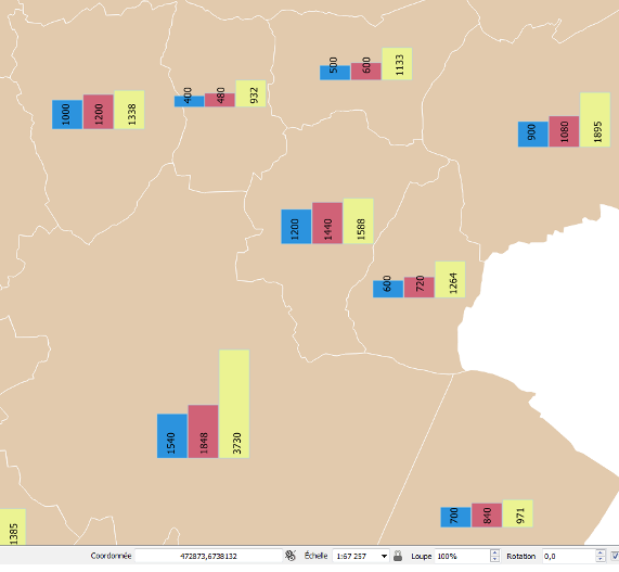A ce jour (QGIS 2.16.3), il n’est pas possible de produire de diagrammes ou histogrammes avec étiquettes sous QGIS. La fiche mise à disposition présente des astuces pour parvenir à un résultat avec un placement automatique.